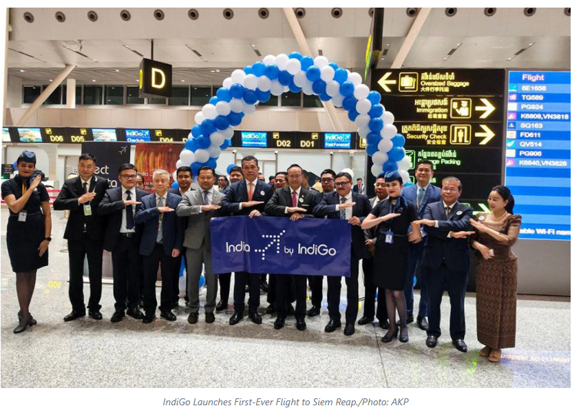 Indian airline IndiGo today launched its first-ever flight from Kolkata to Cambodia’s cultural province of Siem Reap, marking the first time an Indian carrier has operated direct flights between Cambodia and India.
