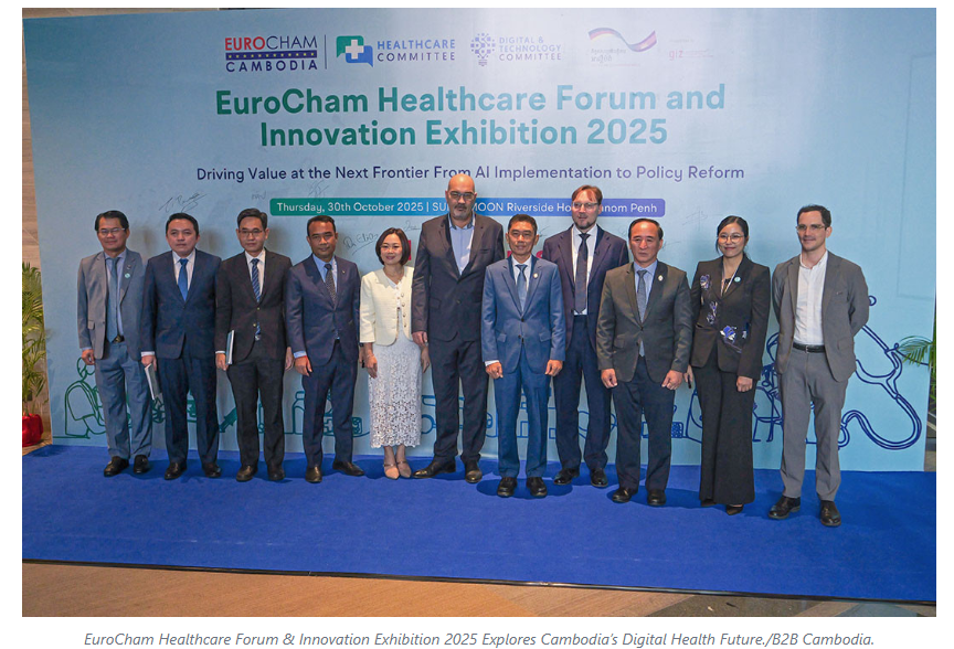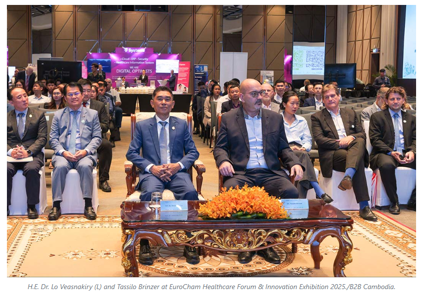 The EuroCham Healthcare Forum & Innovation Exhibition 2025 was held on October 30 at the SUN & MOON Riverside Hotel in Phnom Penh, convening over 200 participants from government, business, and international development, to explore how technology and innovation can drive Cambodia’s next frontier in healthcare.