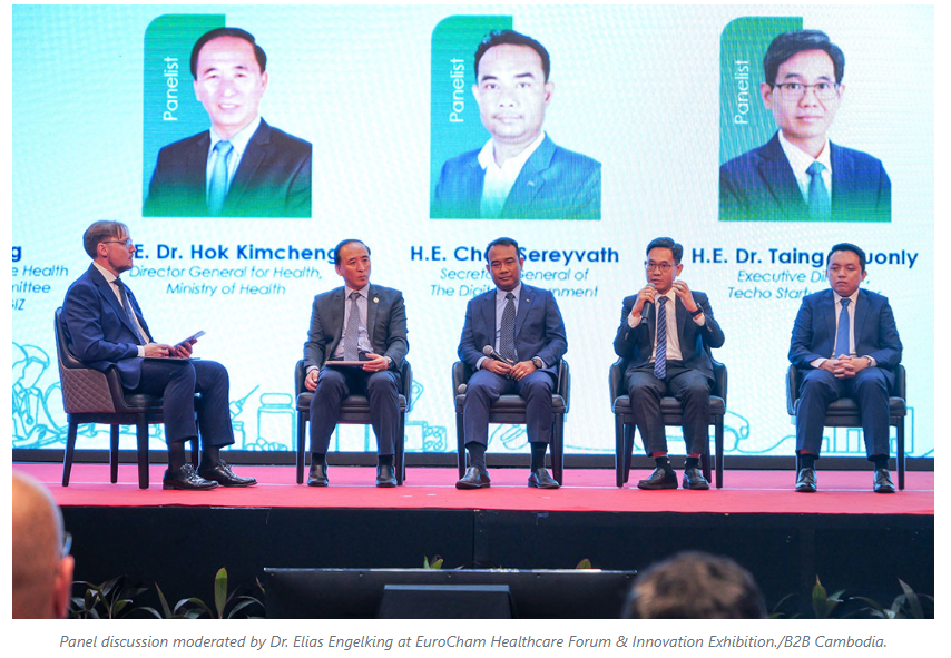Welcome remarks were delivered by Tassilo Brinzer, Vice-Chairman of EuroCham Cambodia and President of German Business Cambodia, followed by H.E. Dr. Lo Veasnakiry, Secretary of State at the Ministry of Health, who highlighted the government’s commitment to advancing digital health as a cornerstone of improved service delivery and national resilience.