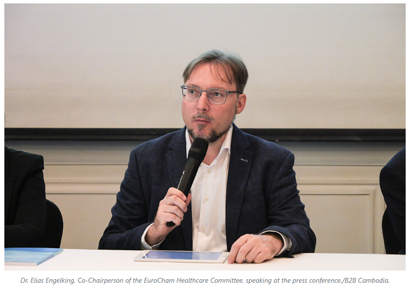 The press conference also featured remarks from Sor Samnangvathana, Co-Chairperson representing Practitioners of the EuroCham Healthcare Committee, and Senior Consultant at DFDL, who introduced highlights of EuroCham’s forthcoming 2025 White Paper, titled “Governing Digital Health Platforms in Cambodia: Legal Insights and Policy Options.”