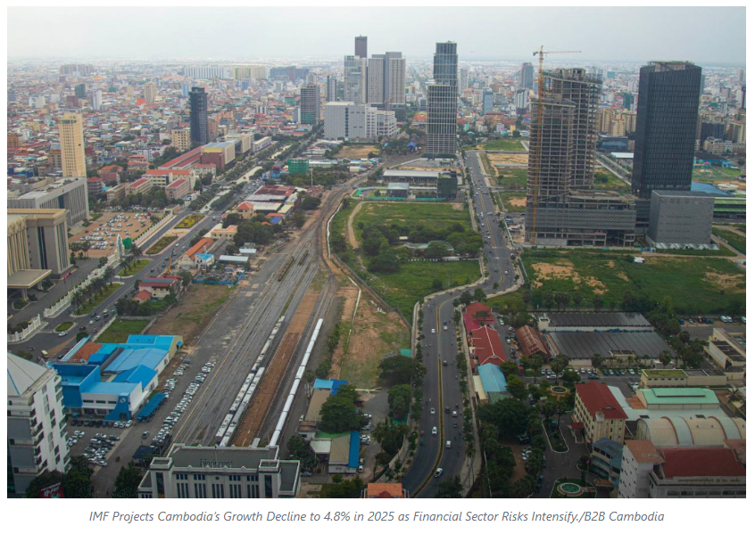Cambodia’s economic growth is expected to slow sharply to 4.8 per cent in 2025 and further to 4.0 per cent in 2026, according to the International Monetary Fund (IMF), which warns of rising financial-sector vulnerabilities amid external shocks and weakening domestic demand.