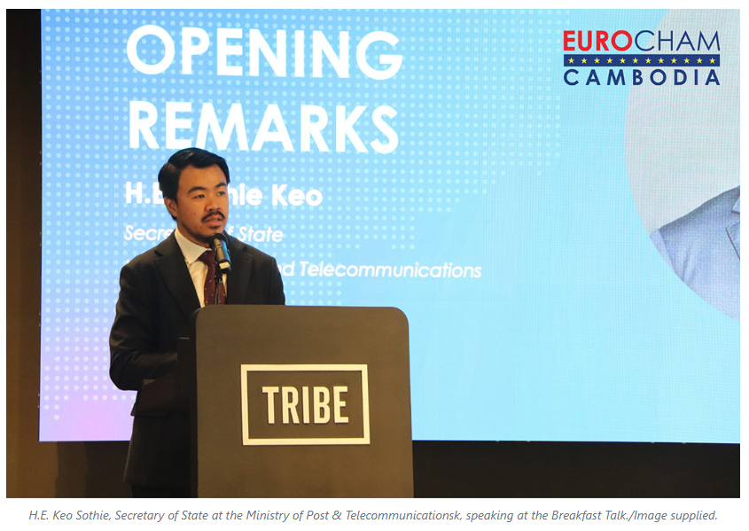 The event opened with welcome remarks from Gabriele Faja, Chairperson of EuroCham Cambodia, followed by H.E. Keo Sothie, Secretary of State at the Ministry of Post & Telecommunications, who highlighted the Royal Government’s ambition to strengthen Cambodia’s digital position and move toward independence in digital infrastructure and governance.