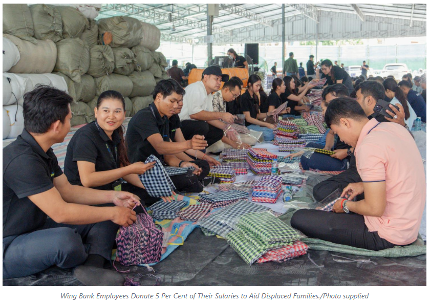 In a heartfelt show of strong solidarity and compassion, employees of Wing Bank have come together to donate USD 200,000 from their salaries to assist families in urgent need, displaced by the ongoing attack by the Thai military forces against Cambodia.