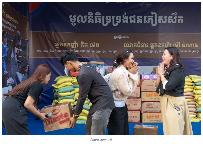 Approximately 5,000 employees contributed 5 per cent of their December 2025 salaries to support the “Foundation for Refugees Assistance”, an initiative led by Neak Oknha Kith Meng, Chairman of the Board of Directors of Wing Bank and Chairman & CEO of Royal Group of Companies; and Lok Chumteav Neak Oknha Mao Chamnan, Vice-Chairwoman of the Royal Group of Companies and President of the Khmer Artists Association.