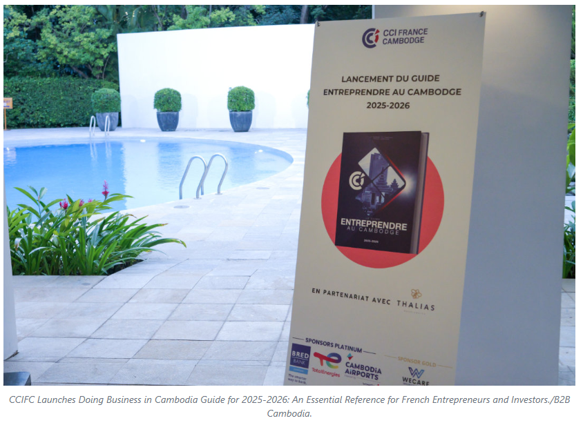 The French Chamber of Commerce and Industry in Cambodia (CCIFC) officially announced the launch of its latest ‘Doing Business in Cambodia 2025-2026 Guide’ on November 28, 2025, during a ceremony held at the Embassy of France in Phnom Penh, attended by H.E. Olivier Richard, Ambassador of France to Cambodia, and Cyril Girot, President of the CCIFC.