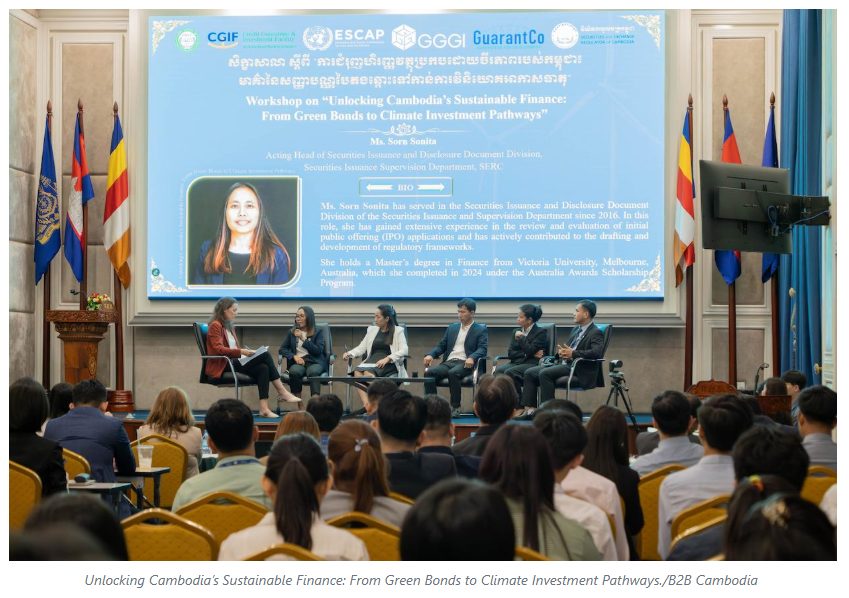 Experts from the UN Economic and Social Commission for Asia-Pacific (ESCAP), Securities and Exchange Regulator of Cambodia (SERC) and Global Green Growth Institute (GGGI) presented on unlocking key climate finance pathways for Cambodia at a workshop held at the Non-Bank Financial Services Authority (FSA) building on September 15, 2025.