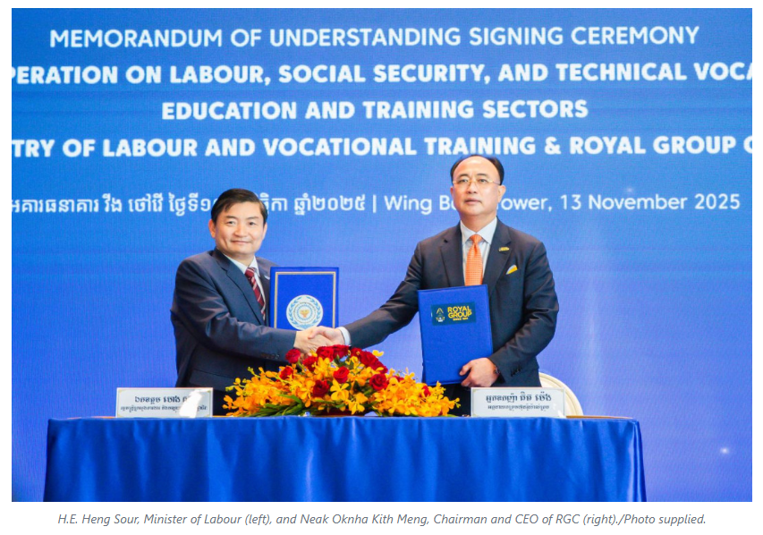 The Royal Group of Companies (RGC), Cambodia’s leading conglomerate, has entered into a landmark partnership with the Ministry of Labour and Vocational Training through the signing of a Memorandum of Understanding (MoU) aimed at accelerating workforce development, promoting financial inclusion, and expanding employment opportunities nationwide.