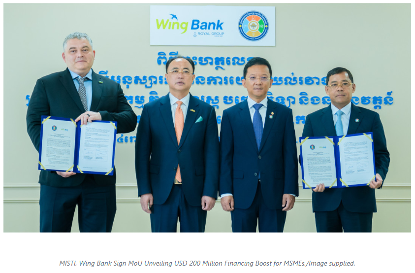 The Ministry of Industry, Science, Technology & Innovation (MISTI) and Wing Bank (Cambodia) Plc. signed a Memorandum of Understanding (MoU) to expand financial services and strengthen support for entrepreneurs, startups, and Micro, Small and Medium Enterprises (MSMEs) across Cambodia.
