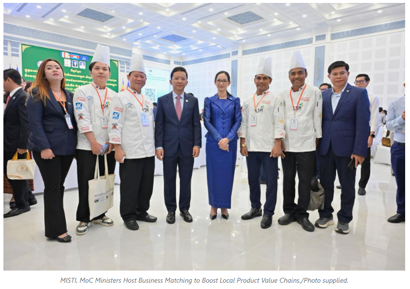 Minister Hem Vanndy and Minister Cham Nimul jointly hosted a business matching event on 1 November to strengthen linkages between producers, distributors, and consumers, with the aim of expanding support for local product value chains.