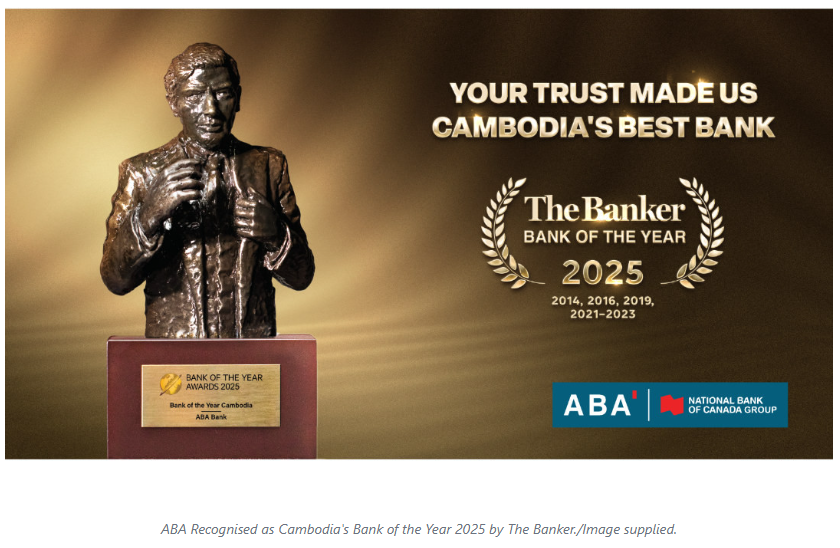 ABA Bank, Cambodia's largest commercial bank, has been named Bank of the Year 2025 in Cambodia by The Banker, an international financial publication under the Financial Times Group (UK).