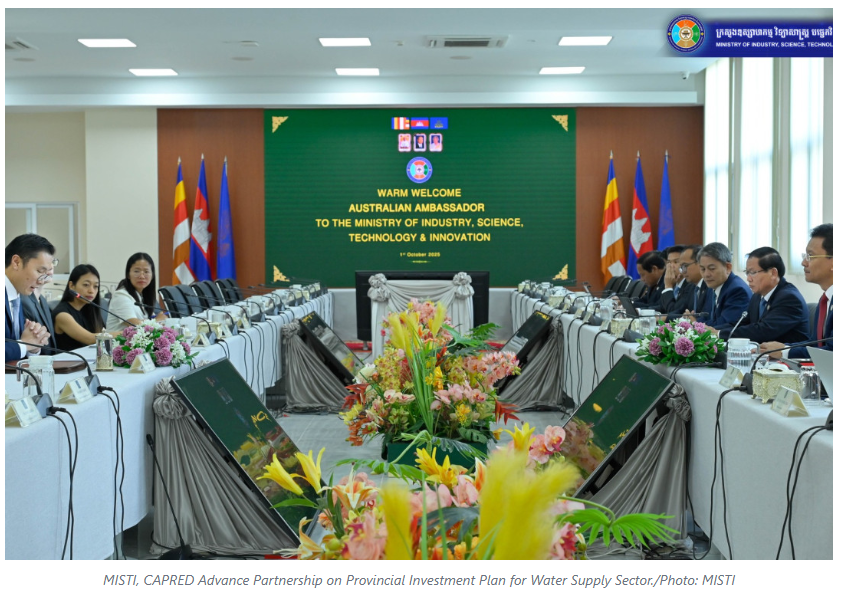 In a meeting here on Oct. 1 with Minister of MISTI H.E. Hem Vanndy, Australian Ambassador H.E. Derek Yip commended Cambodia’s progress, emphasising that achieving universal access will require sustained investment, coordinated planning, and policies that build resilience to climate risks. He reaffirmed Australia’s commitment through CAPRED to advancing financing solutions and fostering collaboration with water operators.