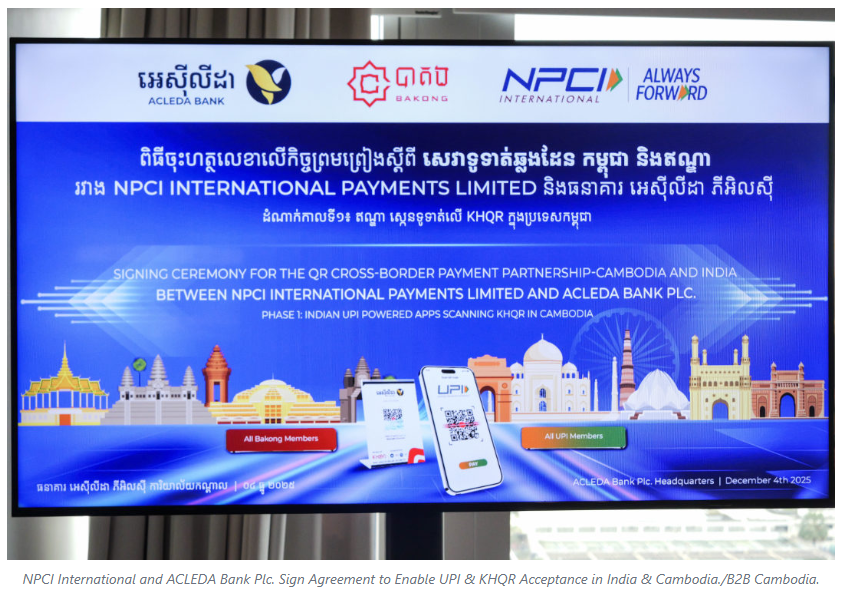 Ritesh Shukla, MD & CEO, NPCI International, said, “Our partnership with ACLEDA Bank Plc. marks an important step in strengthening interoperable digital payment corridors between India and Cambodia. By enabling UPI and KHQR acceptance across both countries, we aim to make travel simpler and empower consumers with trusted and familiar payment options. This partnership reflects our commitment to expanding secure, inclusive, and scalable digital payments on a global scale.”