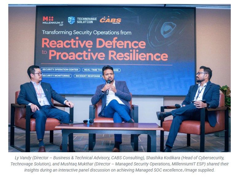 Expert presentations were delivered by Ly Vandy, Director – Business & Technical Advisory at CABS Consulting; Shashika Kodikara – Head of Cybersecurity at Technovage Solution; and Musthaq Mukthar, Director – Managed Security Operations at MillenniumIT ESP. An engaging panel discussion further enriched the session, offering deeper insights into achieving excellence in Managed Security Operations Centers (SOCs).