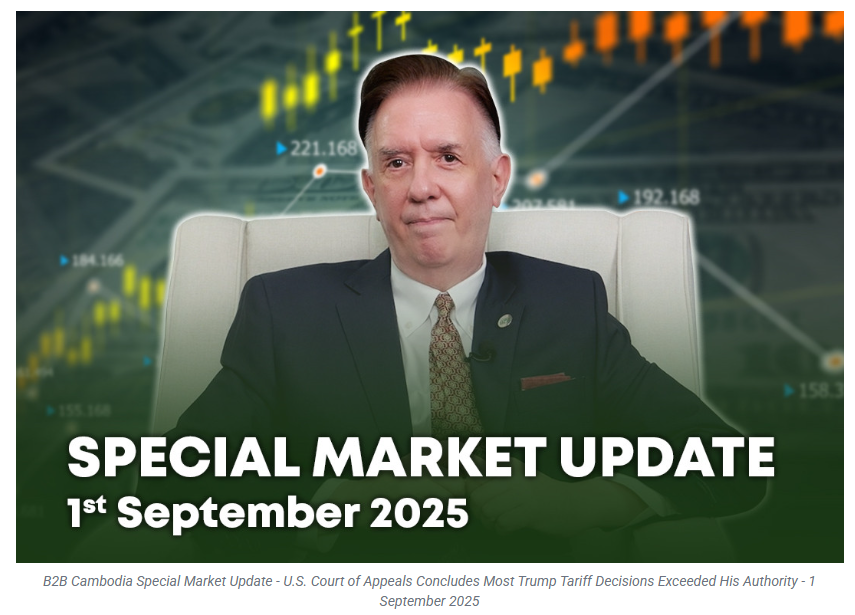 This is a B2B Cambodia Special Market Update on 1 September 2025, Anthony Galliano, Group CEO of Cambodian Investment Management(CIM), breaks down in more details the U.S. Court of Appeals for the Federal Circuit, which in a 7–4 decision, concluded that most of President Donald Trump’s sweeping tariffs exceeded his authority under the International Emergency Economic Powers Act and thus are unlawful. These include the "Liberation Day" tariffs, the 10 per cent baseline tariffs applied broadly, as well as “reciprocal” tariffs.