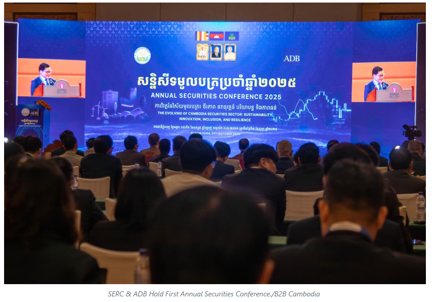 The Securities and Exchange Regulator of Cambodia (SERC), in collaboration with the Asian Development Bank (ADB), hosted the Annual Securities Conference 2025 on October 7, under the theme “The Evolution of Cambodia’s Securities Sector: Sustainability, Innovation, Inclusion, and Resilience” at the Sokha Hotel, Phnom Penh.