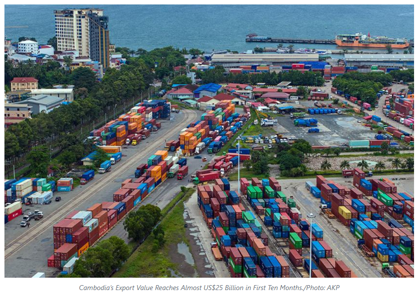 Cambodia exported products worth approximately USD 24.94 billion in the first ten months of 2025, an increase of 15.2 per cent compared to the same period last year, according to an official report released on Monday.