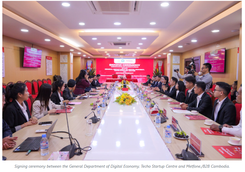 The signing ceremony was presided over by H.E. Dr. Taing Ngounly, Director General of the GDDE and Executive Director of the Techo Startup Centre; Doan Chinh, Vice General Director of Metfone, with other senior representatives of the GDDE, Techo Startup Centre and Metfone in attendance.