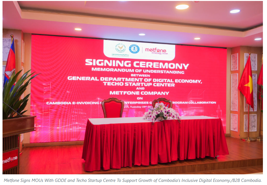 Metfone, a leading telecommunications company in Cambodia, signed Memoranda of Understanding (MOUs) with the General Department of Digital Economy (GDDE) on Invoice System Integration, and the Techo Startup Centre on the ‘Enterprises Go Digital’ program, on December 9, 2025, at the Metfone Head Office.