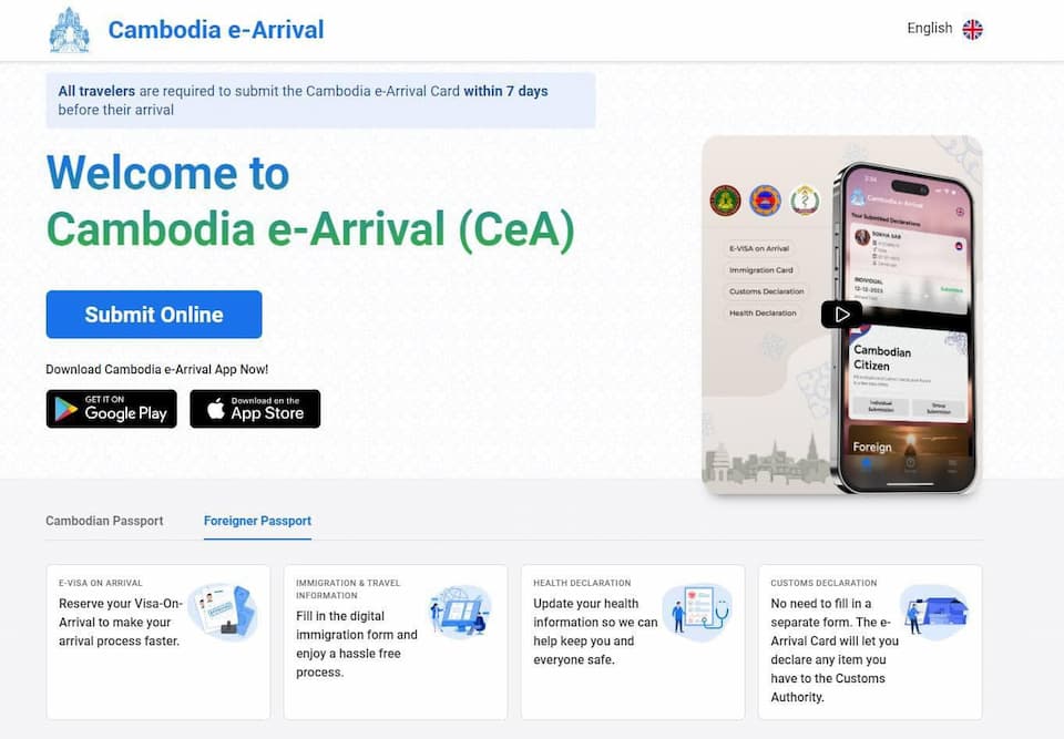 - As of 2024, the Cambodia e-Arrival (CeA) system was introduced, which replaces the previous paper forms used for immigration. The CeA replaces the; Paper immigration form; Health form; and Customs Declaration (see more at the end of this guide)