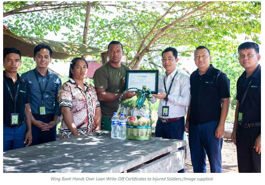 In response to the appeal of Samdech Moha Borvor Thipadei Hun Manet and under the guidance of the National Bank of Cambodia, Wing Bank has decided to fully waive debts for soldiers martyred or permanently disabled in direct operations and reduce debts by 75 per cent for those injured. Since late July 2025, the bank has been working closely with local authorities and affected families to ensure timely and proper resolution.